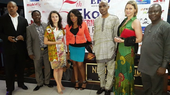 Hope Obioma Opara, President of the annual Eko International Film Festival, Bola Saliu, Nicole Polsterer of makido Film, Amaka Anioji, Ekenyerengozi Michael Chima, Nella Hengstler, Commercial Counsellor of the Austrian Embassy in Nigeria who represented the ambassador and a guest at the closing day of the event, Sunday evening of November 23, 2014.